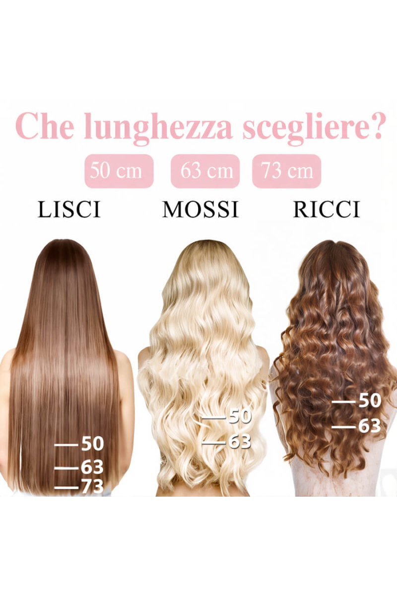 Ogni extension ha la punta a forma di U fatta di cheratina artificiale, una colla di alta qualità. Si incolla direttamente ai tuoi capelli con una pinza per extension, garantendo un effetto ultra naturale.