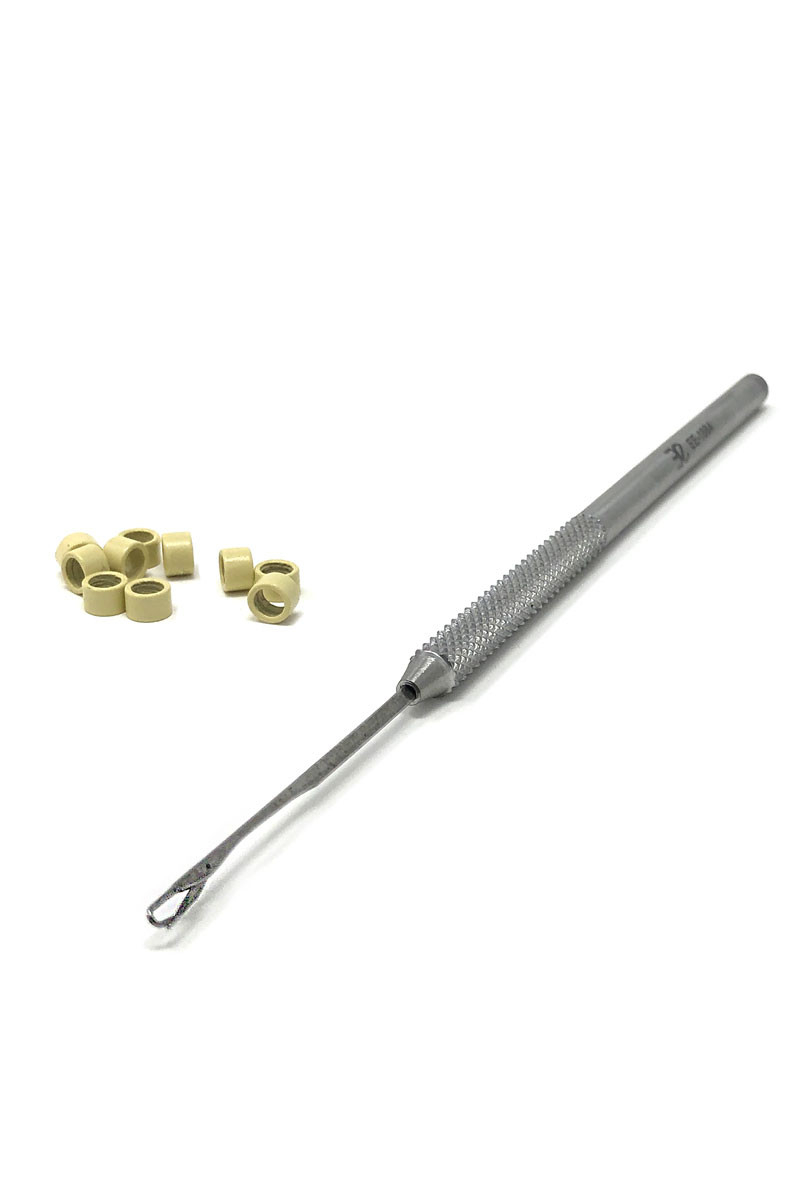 Aiuta a infilare le ciocche di capelli negli anellini di fissaggio in modo semplice e senza sforzo.