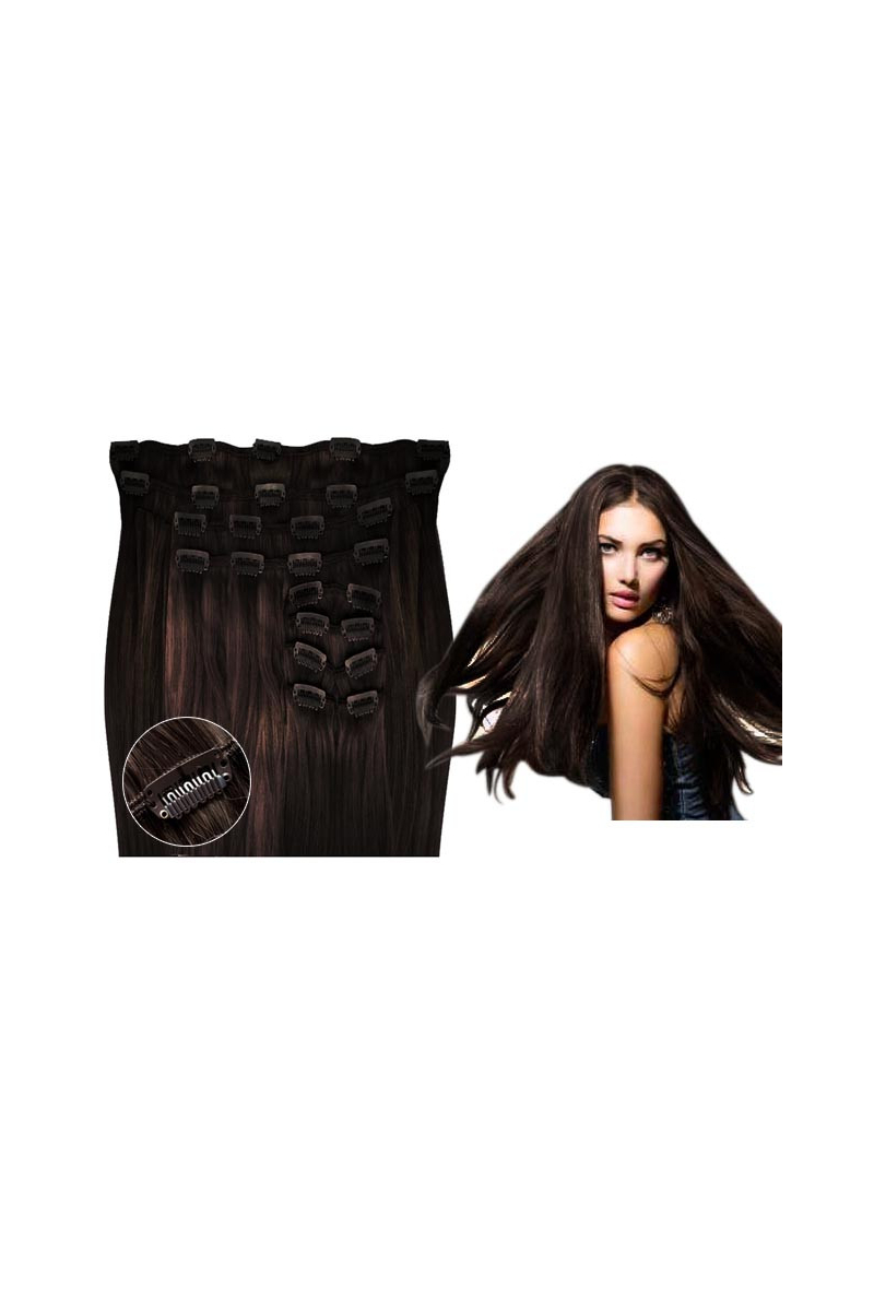 Extension clip Maxi Volume 180 g capelli lisci veri 63 cm - castano scuro