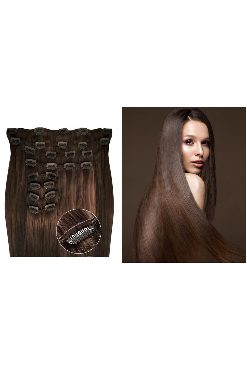Extension clip Maxi Volume 180 g capelli lisci veri 63 cm - castano